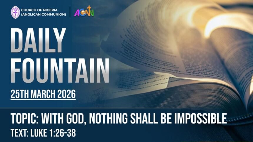 Topic: WITH GOD, NOTHING SHALL BE IMPOSSIBLE Text: Luke 1:26-38 1:26 Now in the sixth month the angel Gabriel was sent by God to a city of Galilee named Nazareth, 1:27 to…